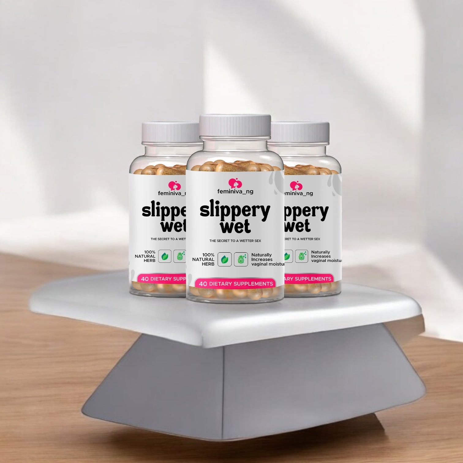 SLIPPERY WET is made with 100% organic herb. Ulmus rubra & a proprietary blend. The first oral capsules for vaginal dryness in Nigeria.